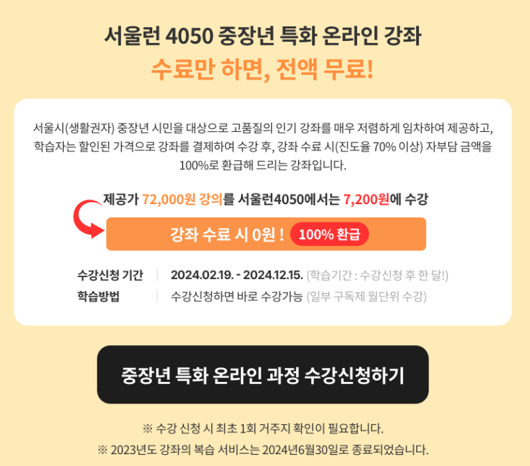 서울런 4050 평생학습포털 중장년 무료교육 신청방법